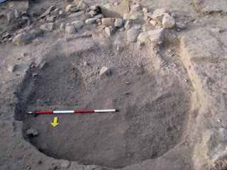 a escavação do Hipogeu 1 e da fossa 40, uma das que apresenta deposições de