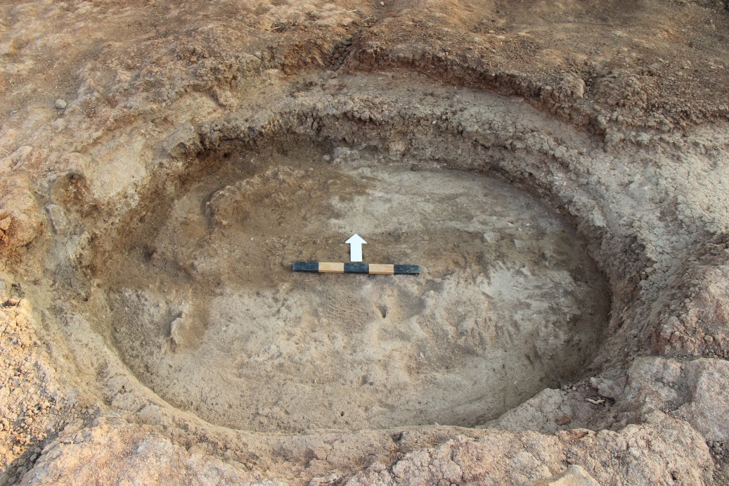 Trata-se de um troço de fosso com materiais que apontam para um Neolítico Médio (à imagem do que acontece com os troços de fosso e fossas mais a Oeste). É interessante verificar que este troço apresenta também recortes e preenchimentos por segmentos. É bem visível um preenchimento argiloso em primeiro plano (que na área em que está a ser sondado é estéril até ao momento), seguido por um preenchimento central (ladeado por argilas) com grandes ossos de auroque, pedras e outros restos de fauna e cerâmica). Apenas mais um exemplo de que não se deve generalizar a todo o perímetro de um fosso as observações realizadas numa secção.