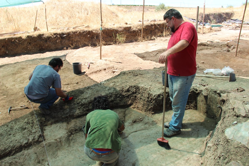 Hoje foi dia de muito, muito calor. O dia aberto levou visitas aos Perdigões, que depois assistiram a uma palestra sobre a questão do fim dos recintos de fossos perspectivada a partir da própria biografia dos Perdigões. Estivemos, por isso, menos tempo no campo (o que todos agradeceram face ao calor).
