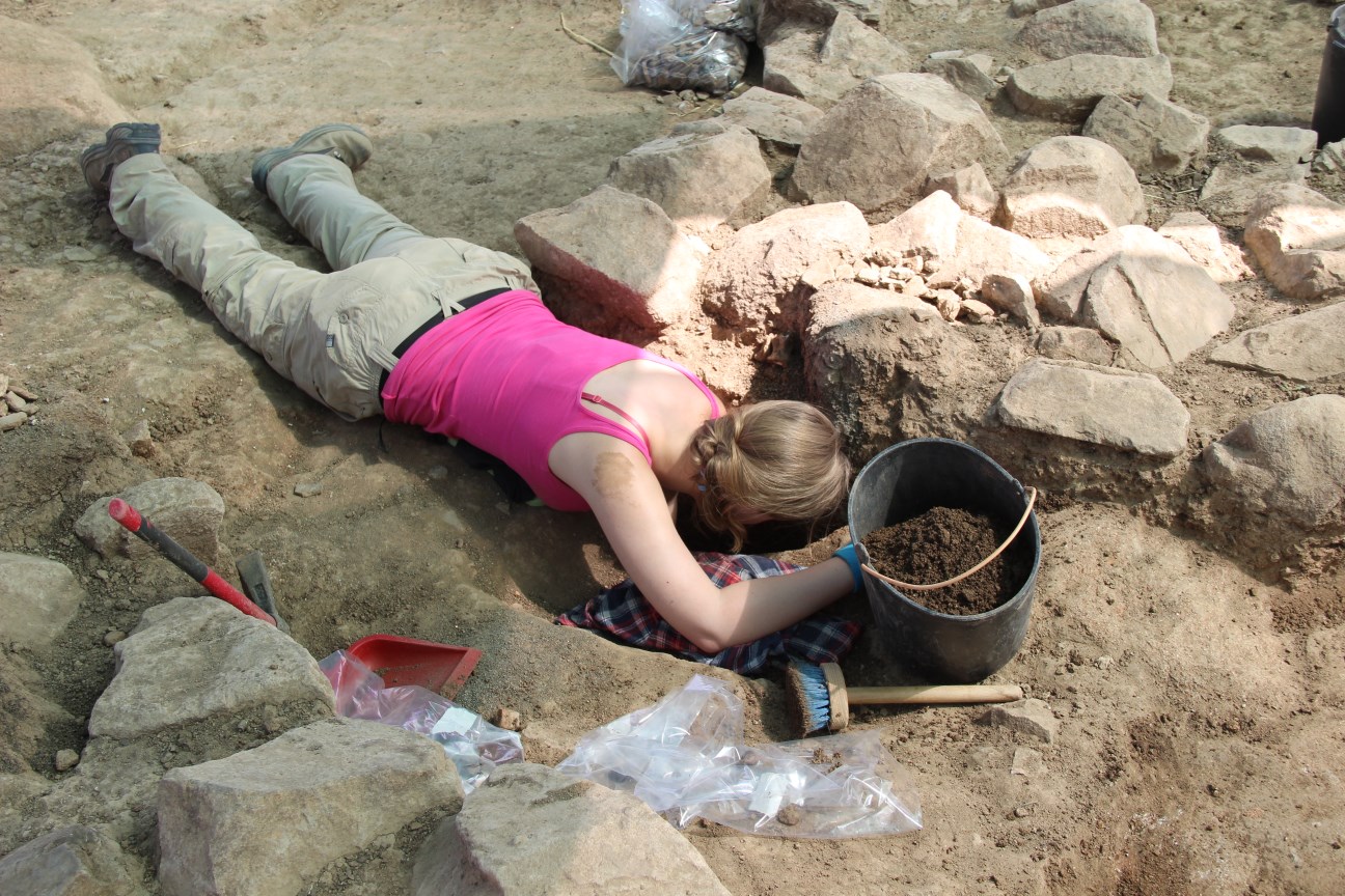 Meanwhile, in the other pit botanic remains (possibly of linum) keep growing.