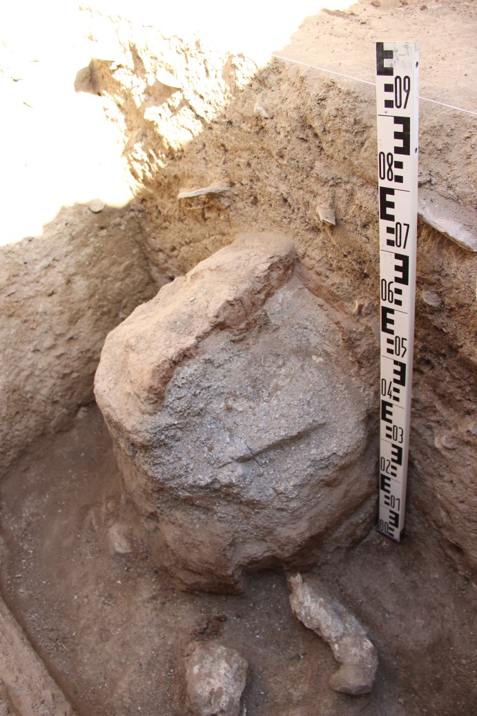 When we went deep in the excavation, the rock continued, circular and coated by the clay. It looks like a bedrock column, like others known in large pits or Mediterranean hypogea. Because the rock is strongly weathered the coating with clay was a solution to avoid degradation (that occur once we did the section in the clay).